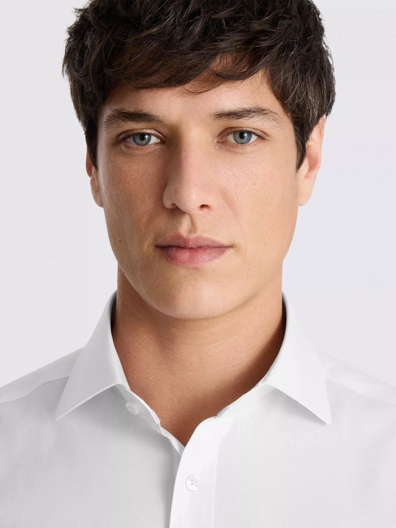 Cotton Blend Long Sleeve Regular Shirt, White