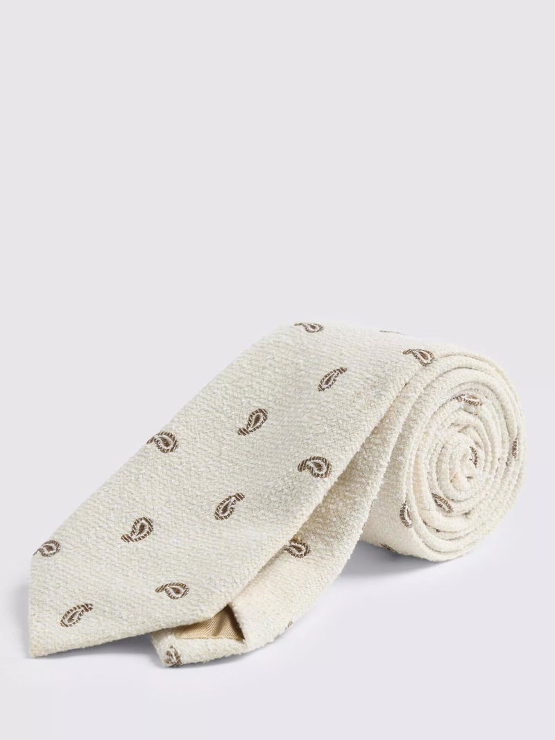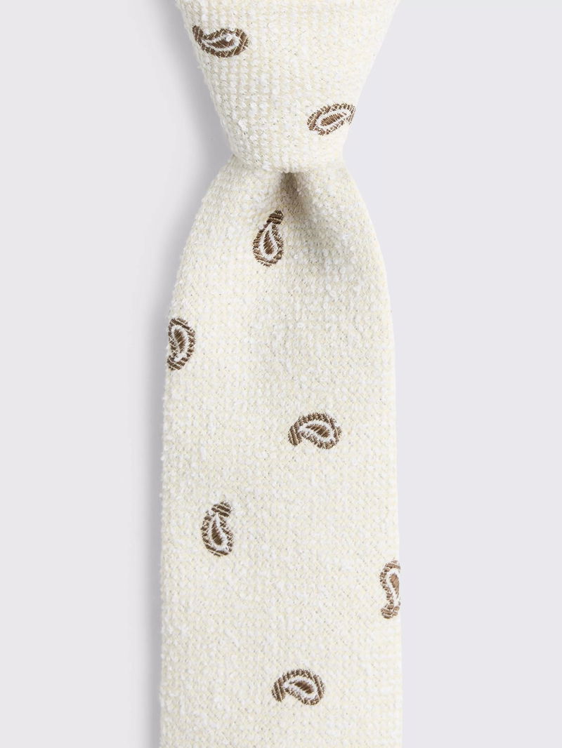 With a unique mix of armour construction and irregular burette, this neutral Italian-made tie is made using both cotton and silk to really bring the texture to life. A micro paisley pattern is knitted in for classic appeal, while interlining and hand-finished stitching round things off with expert attention to detail.