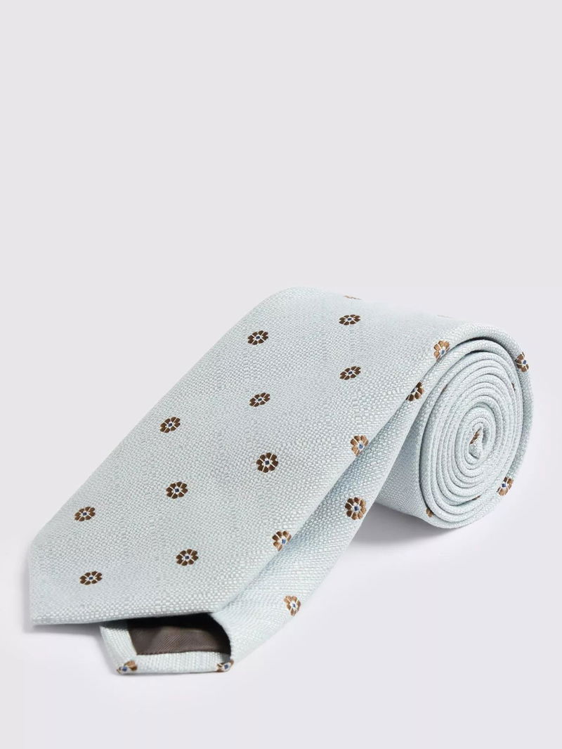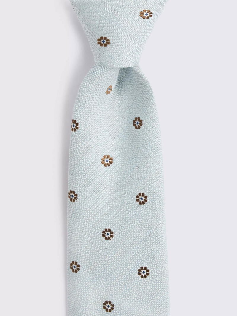 Italian Medallion Cotton Linen Blend Tie, Light Grey/Blue