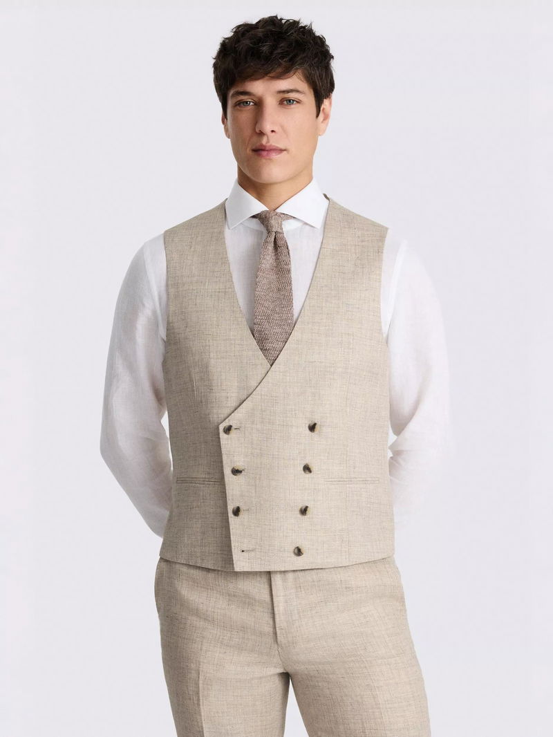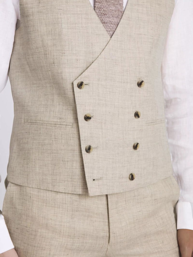 Linen Double Breasted Tailored Suit Waistcoat, Neutral