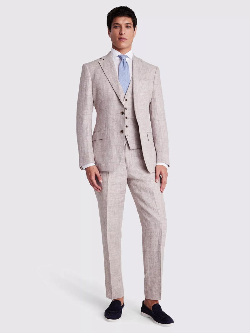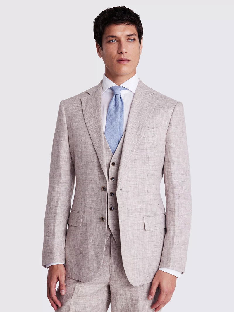 Linen should be on every man's list when the warmer weather's approaching. Moss' suit jacket is delivered in an oatmeal colour with an easy regular fit that's great for keeping you cool and comfortable at summer gatherings and destination weddings.