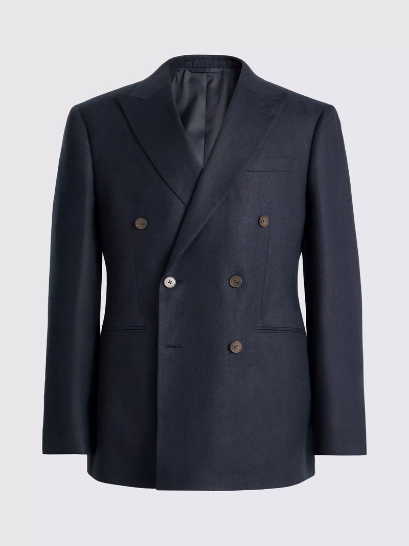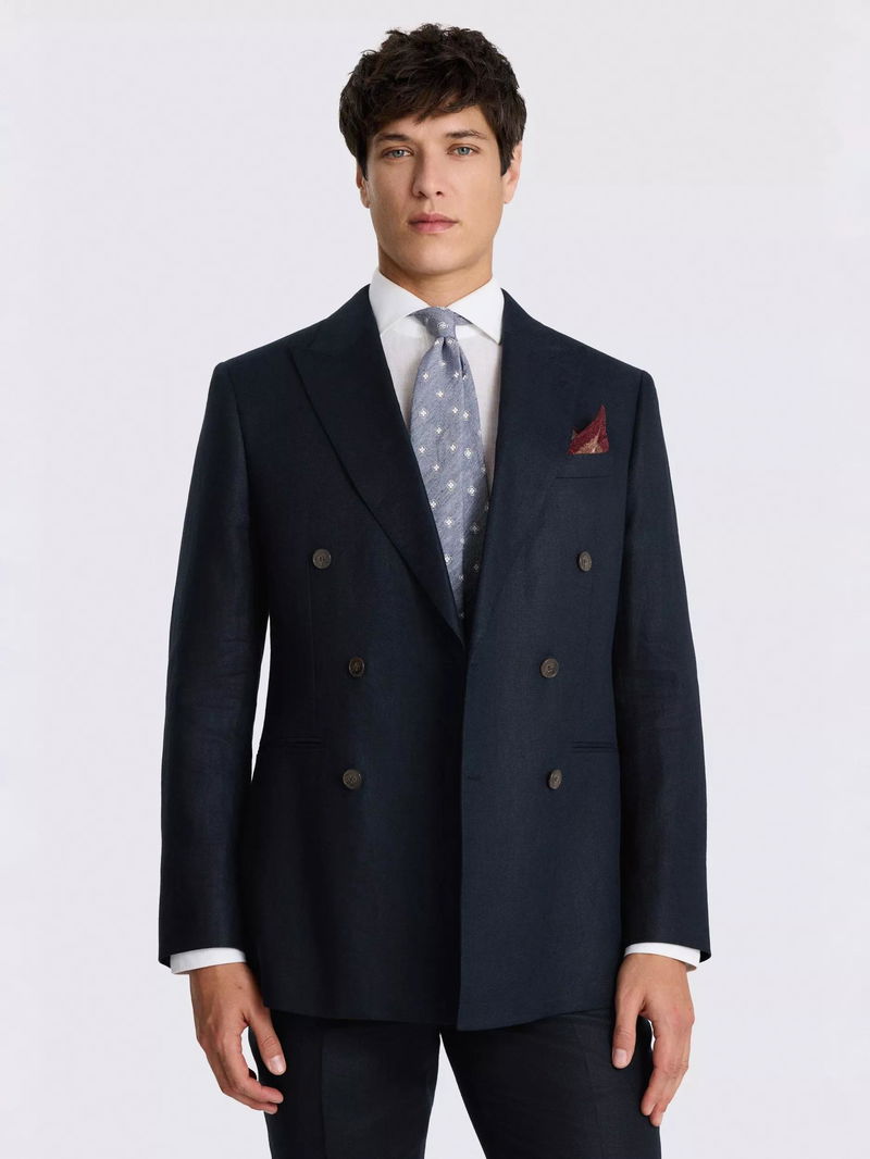 Linen Tailored Double Breasted Suit Jacket, Navy