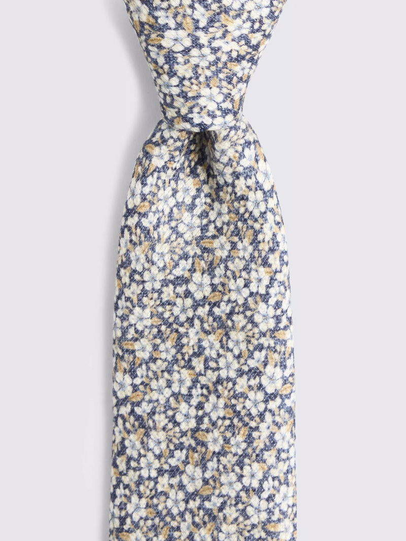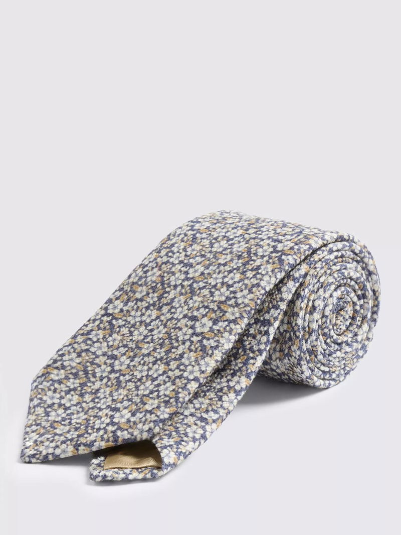 Linen With Cotton Textured Ditsy Floral Tie, Navy