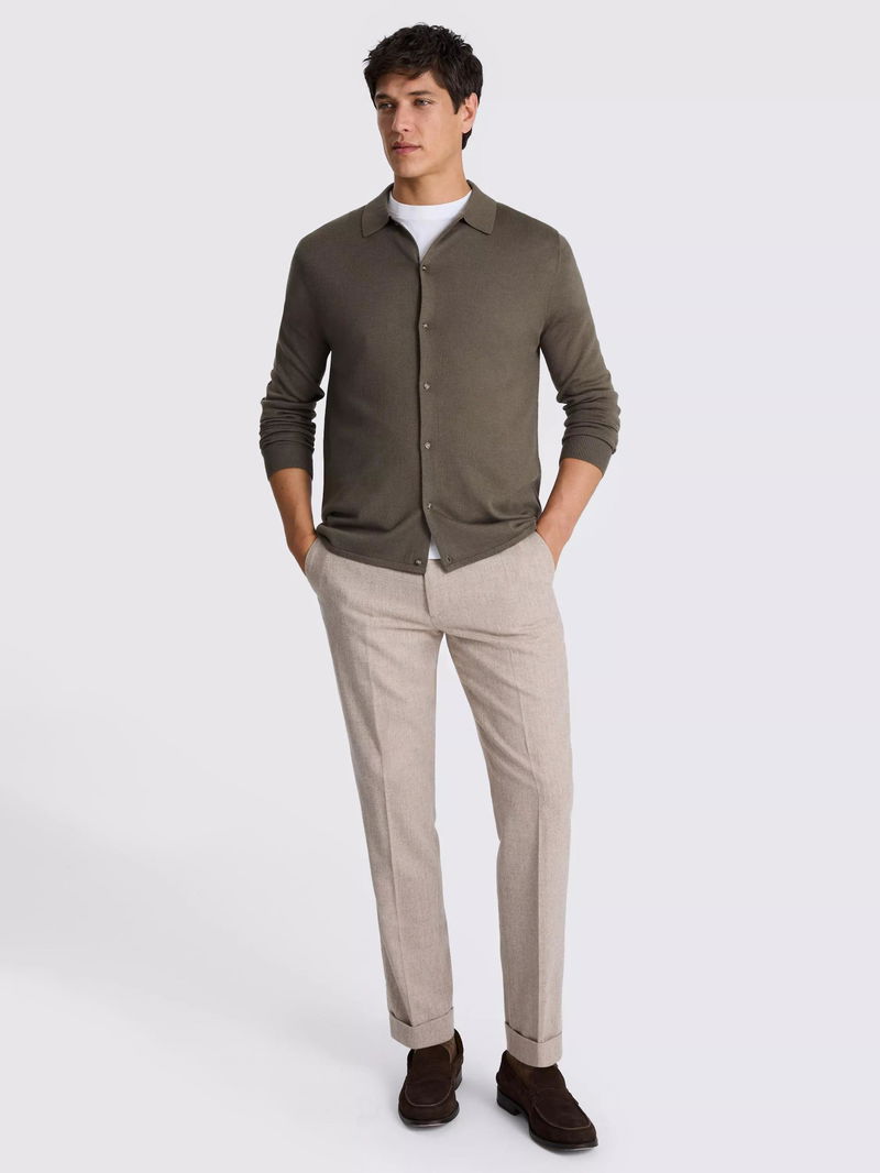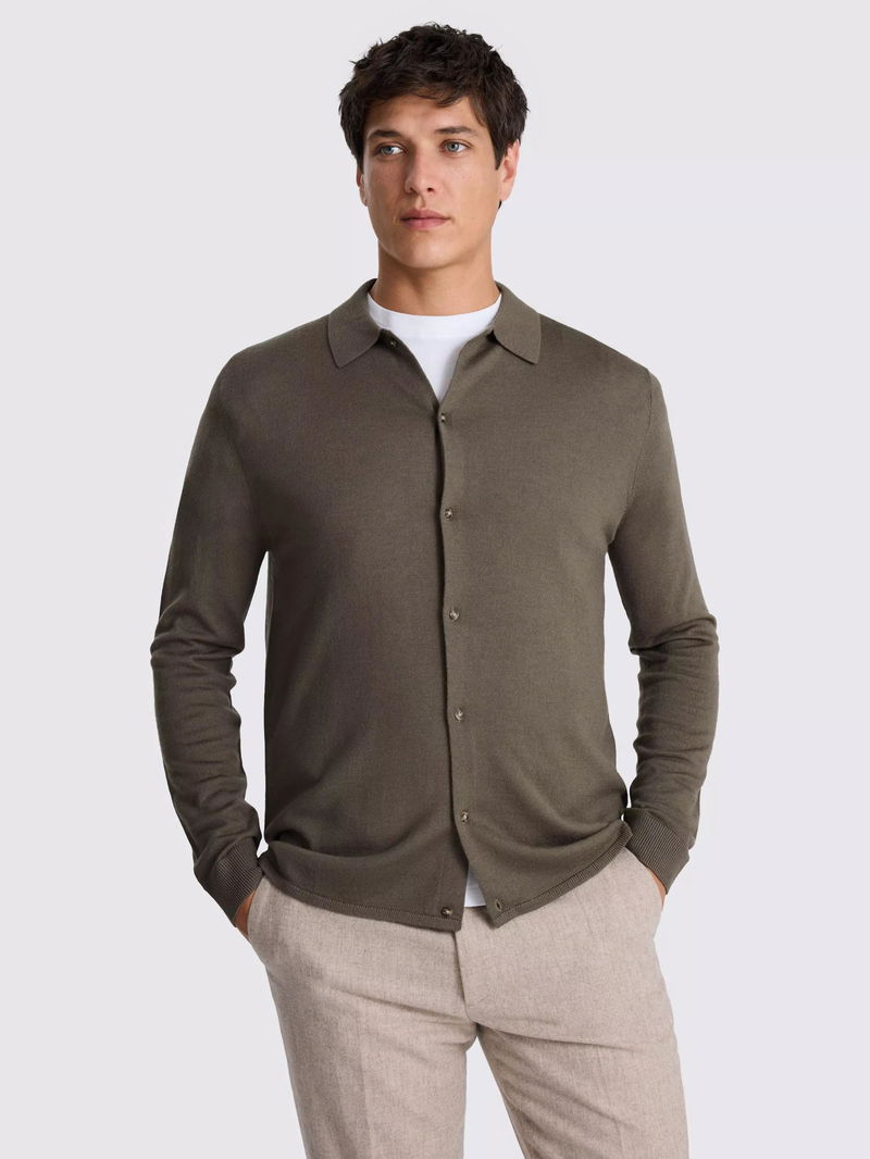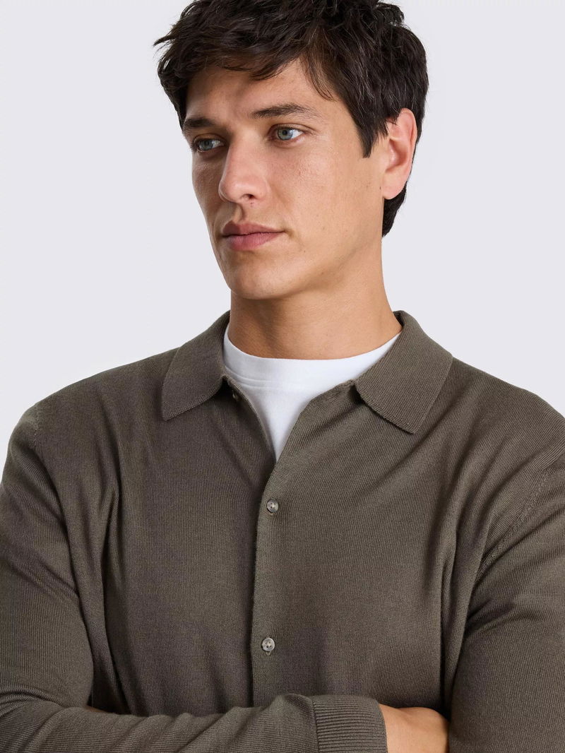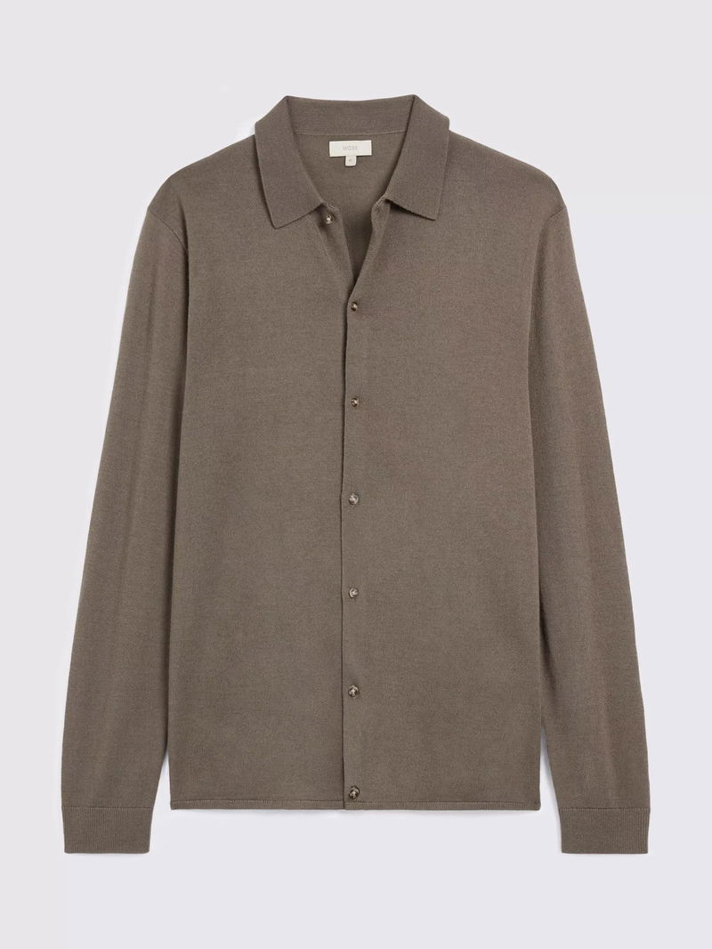 A versatile choice for work or the weekend, this dark-taupe shirt is knitted from merino-rich yarns for a soft, refined feel. The fabric is reinforced with durable fibers, ensuring it maintains its shape even after regular machine washing.