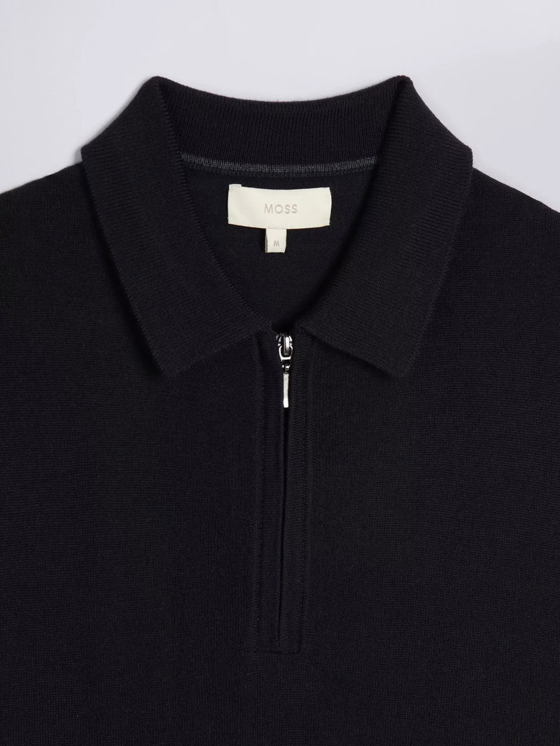 Merino Wool Blend Regular Fit Zip Neck Polo Shirt