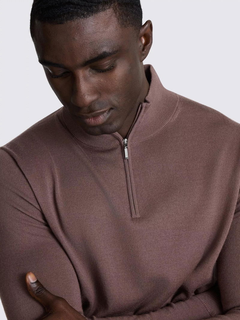 Merino Wool Blend Zip-Neck Jumper