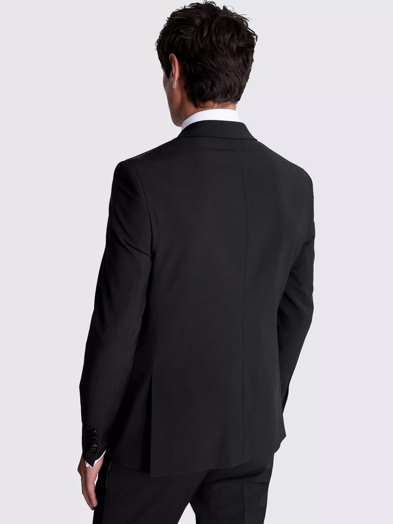 Trimmed with tonal satin, it's tailored to a pin-sharp fit with faux cuffs and twin back vents.