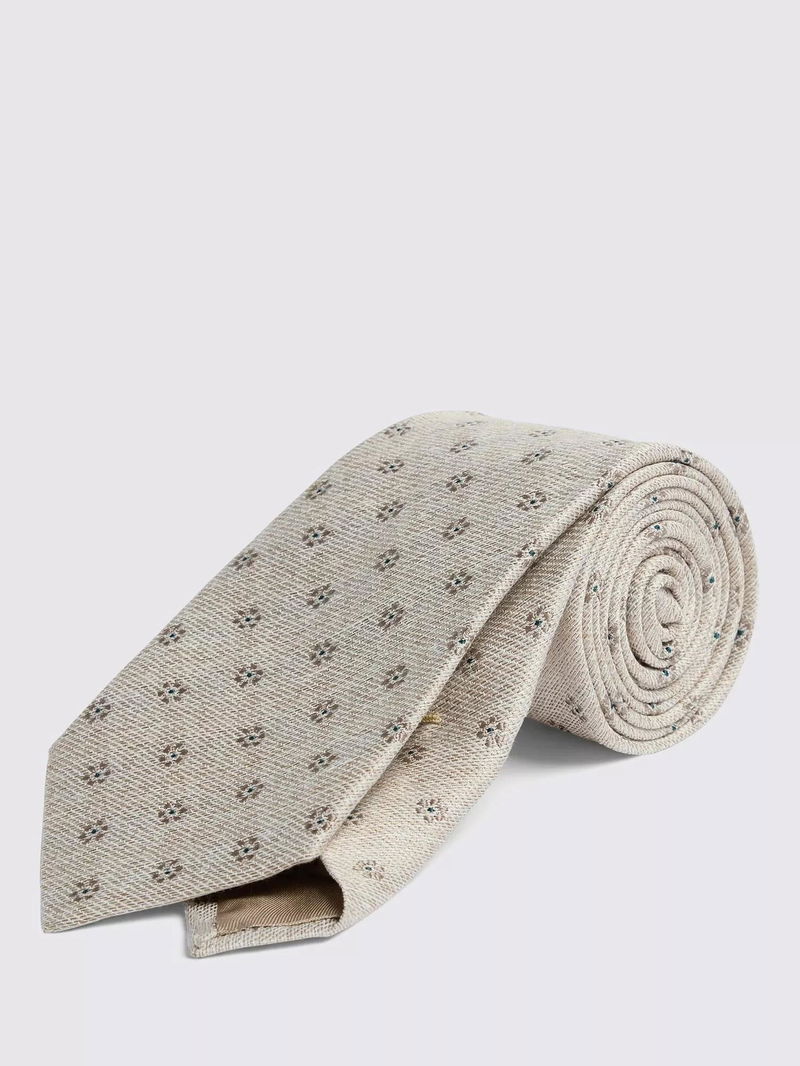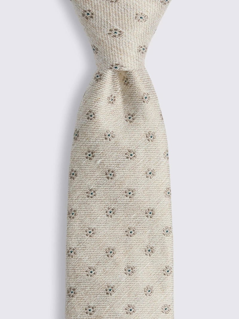 Silk Blend Ditsy Floral Tie, Beige