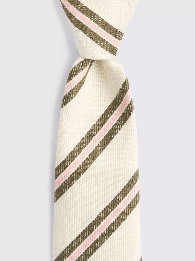 Silk Diagonal Stripe Tie, Off-White/Olive/Pink