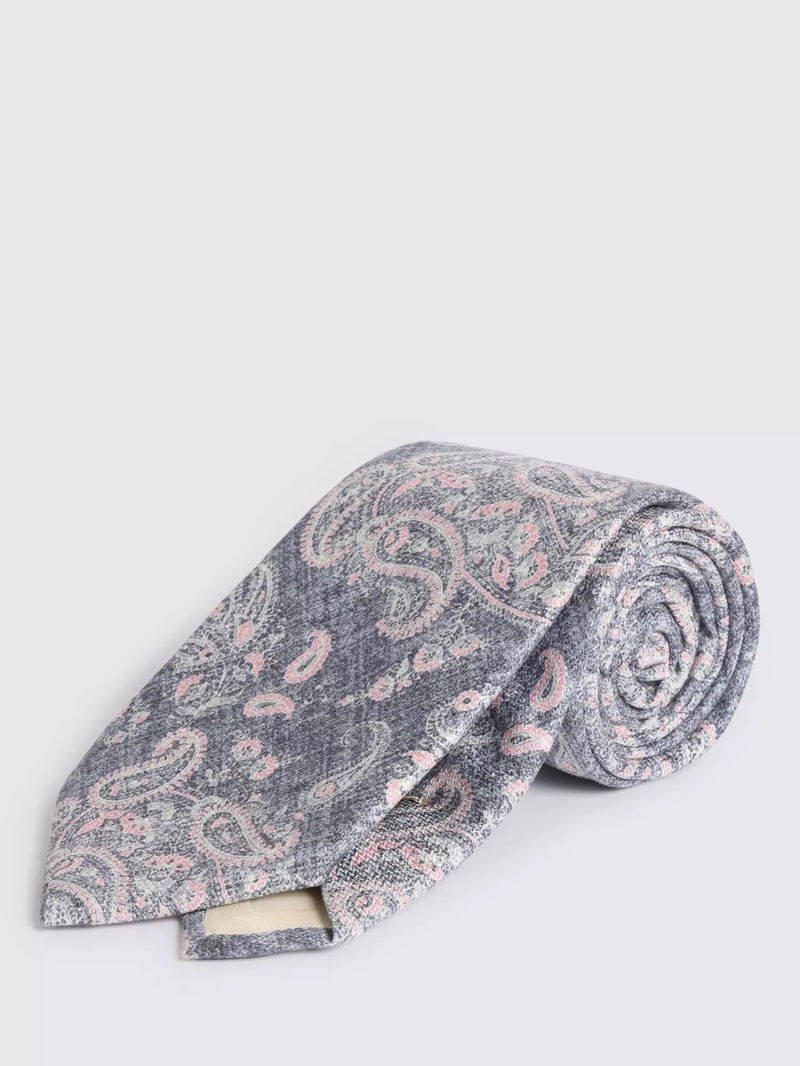 Silk Paisley Tie, Mid Blue/Pink