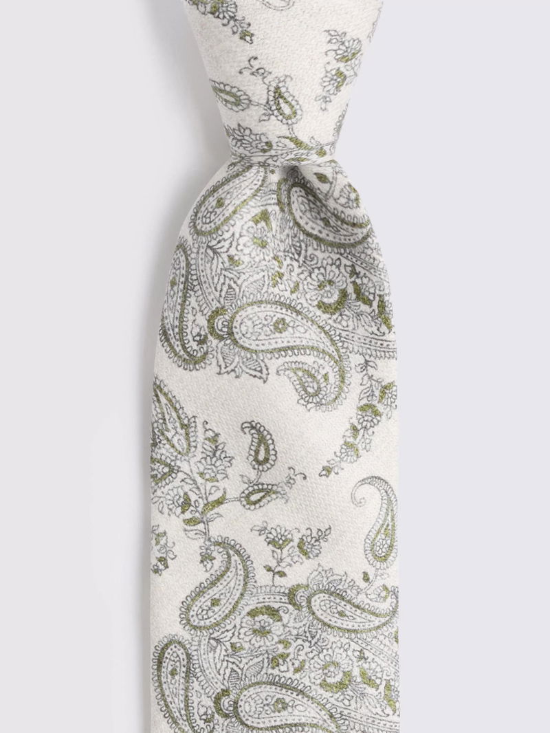 Silk Paisley Tie, White/Khaki