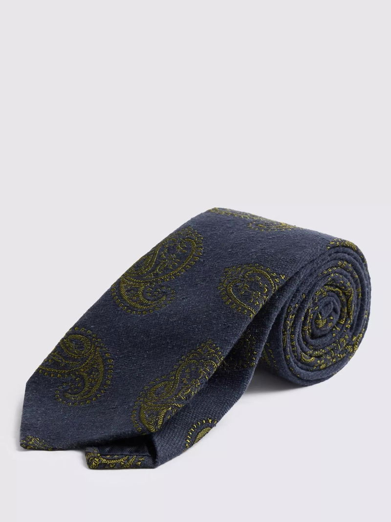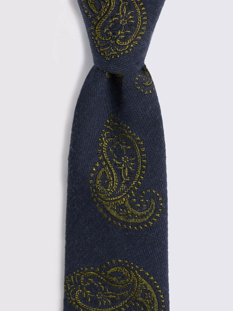 Silk With Cotton Macro Paisley Tie, Navy/Bright Green