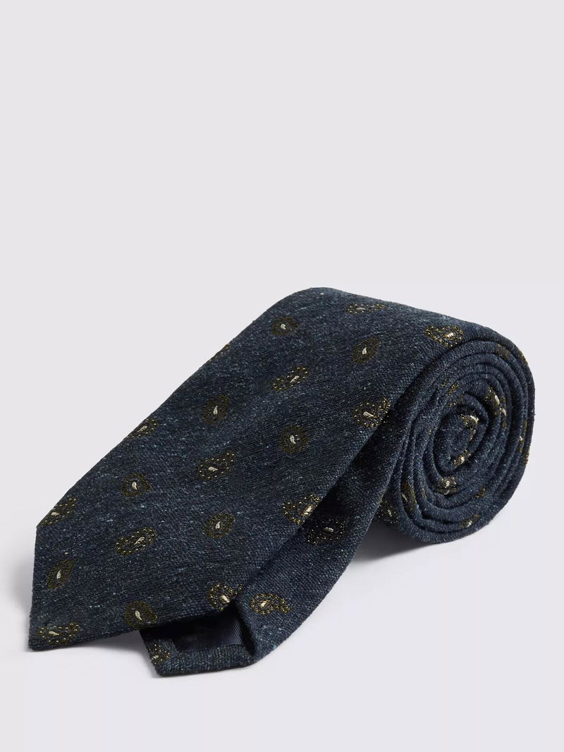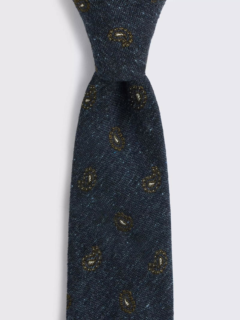 Silk With Cotton Paisley Tie, Navy /Dark Olive