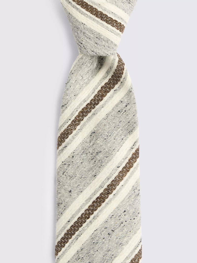 Silk With Cotton Sablé Effect Striped Tie, Grey/Brown