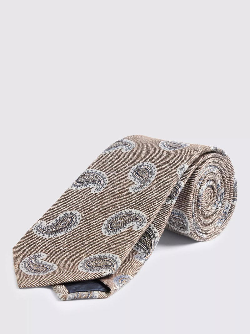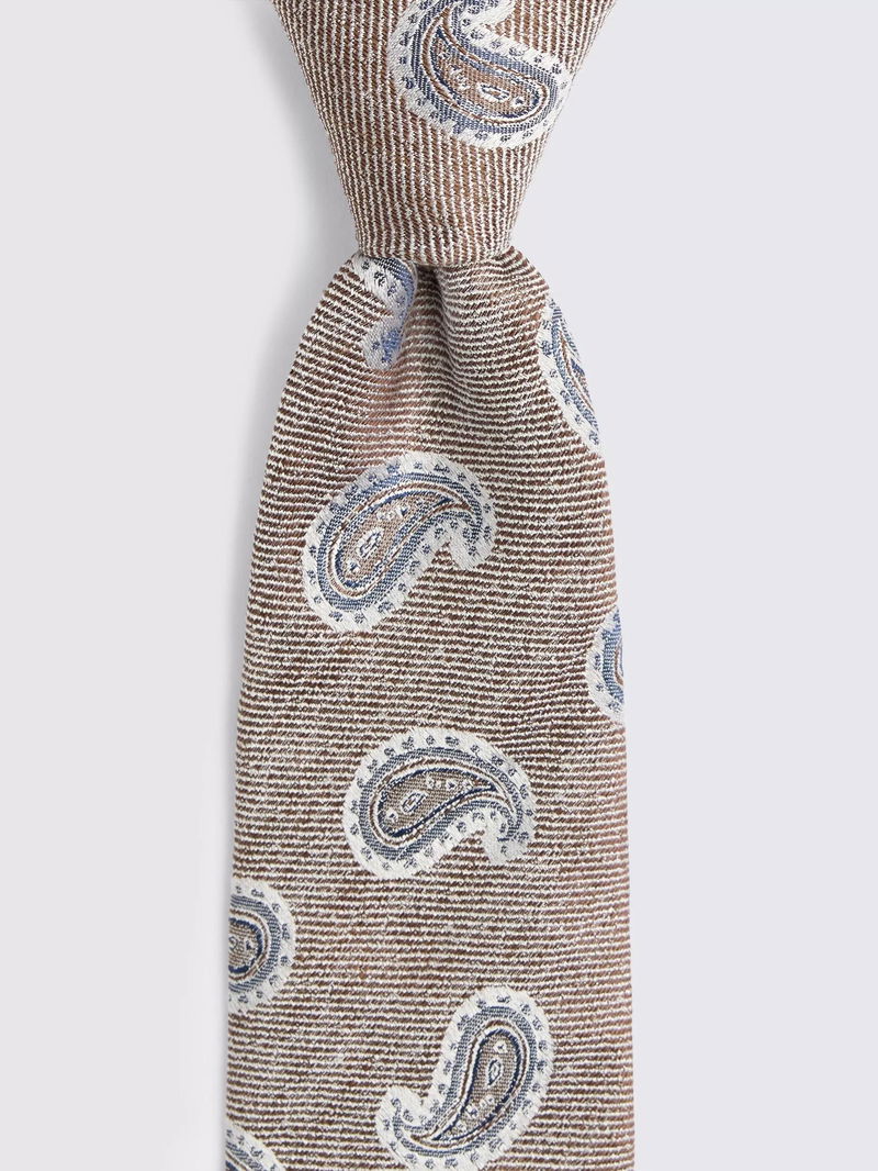 Silk With Linen Paisley Tie, Neutral/Blue