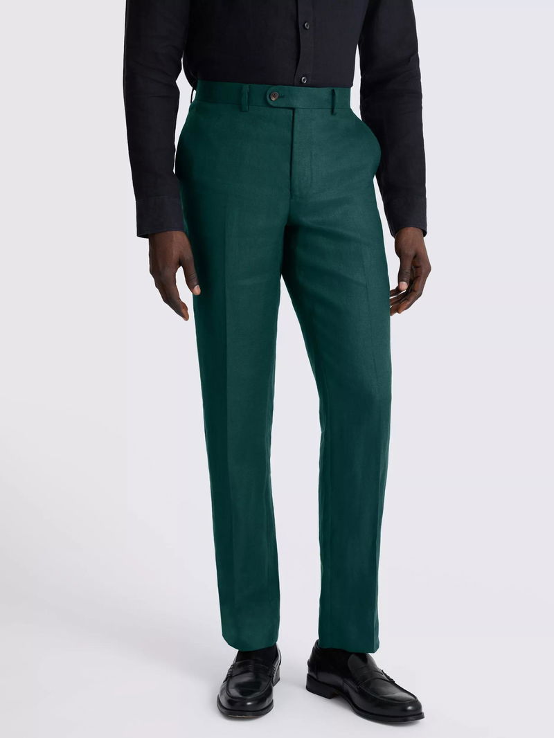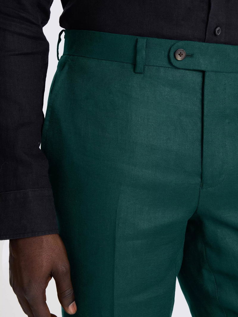 Slim Fit Linen Twill Suit Trousers, Emerald