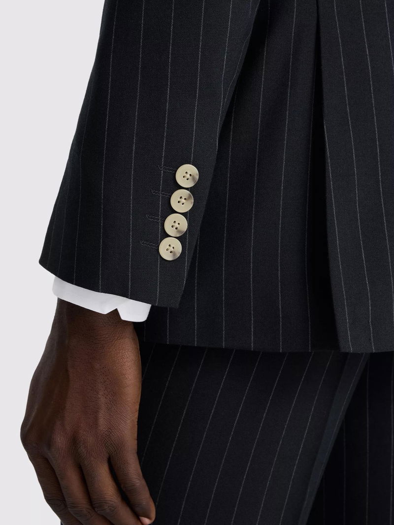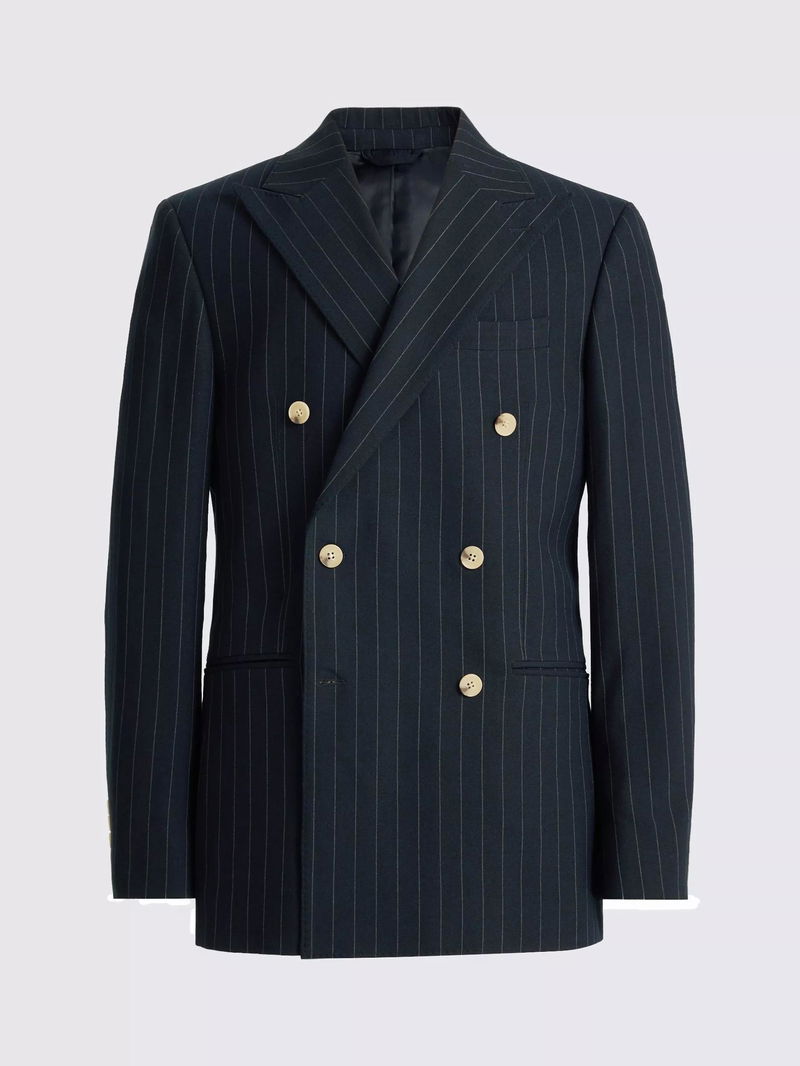Tailored Fit Double-Breasted Striped Suit Jacket, Navy