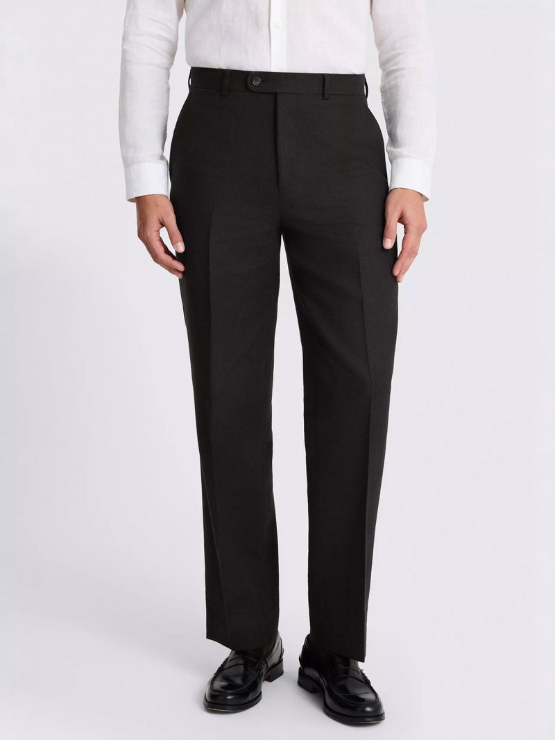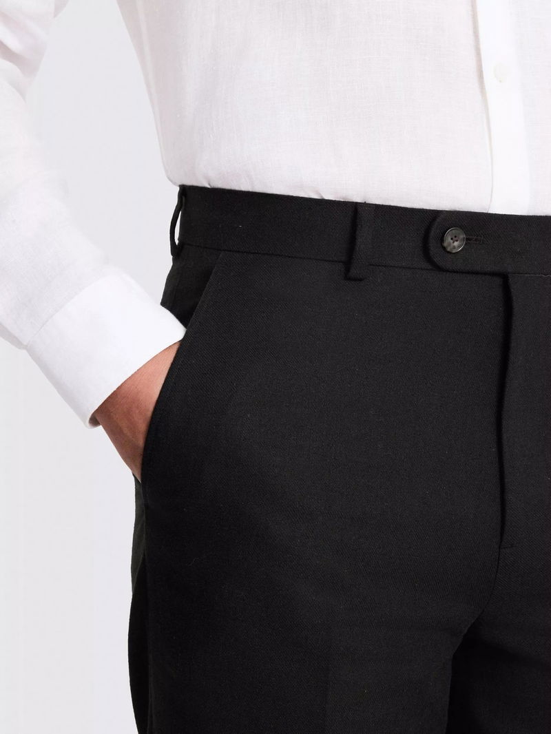 Tailored Fit Linen Blend Suit Trousers, Black