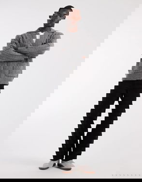 Description: With a zip at the collar so you can change up the look, Moss' jumper is knitted in yarns that are rich in soft merino wool, a great fibre for keeping you at a comfortable temperature in all conditions. The light-grey hue is perfect for pairing with tailoring but it'll work just as well with casual looks. Materials: 70% merino wool, 30% acrylic Product Code: 113989447