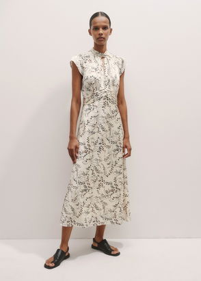 A piece that draws the eye without being overpowering, this dress from Mother of Pearl comes in the must-have tiered shape of the season as well as finishing at a midi length that is both contemporary and easy to wear. With a charming bow print running throughout, this ECOVEROTM dress is finished with a distinctive pearl-toned button at the collar. A great piece to turn to when you need something simple but don't want to compromise on your style, just add on boots and a leather jacket to complete the look.
