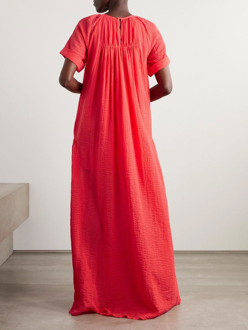 Mother of Pearl's 'May' dress is made from organic cotton-blend seersucker. It's softly gathered through the bodice and falls to a floaty tiered skirt. Complement the coral shade with neutral accessories.