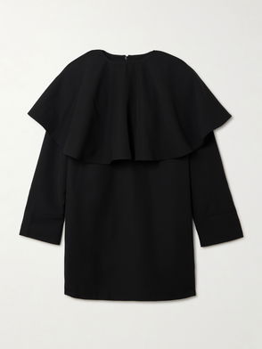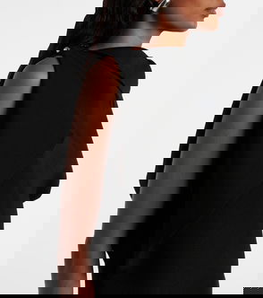 Massimo Giorgetti’s Pre-AW19 collection features a smattering of floral patterns influenced by character Joyce Byers’s wallpaper in Stranger Things and the green jacquard iteration illustrating this black dress is particularly striking. It’s crafted in Italy to an A-line silhouette with a feminine ruffled dip-hem panel and turns to reveal wide ties which secure in large bows. Style it with square-toe mules for a party.