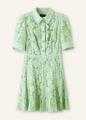 MSGM's pink and white striped dress is trimmed with a charming ruffled panel at its centre, capturing the Italian label's irreverent spirit. It's rendered from cotton-blend poplin to a shirt silhouette with a sharp point collar, which is balanced by puffed sleeves and a playful mini-length hem.