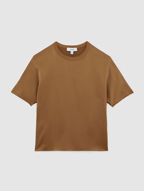 Sandra Sandor, known as Nanushka, tells us about her spiritual adventure through her bohemian-inspired pieces made with carefully-selected materials. The Martin shirt was designed on that basis in a brown wool and silk blend. Cut in a loose silhouette, it features two chest pockets as well as two other side piped pockets. It can be paired with beige trousers or one of the label's vegan leather camel skirts to match the seasonal colour palette.