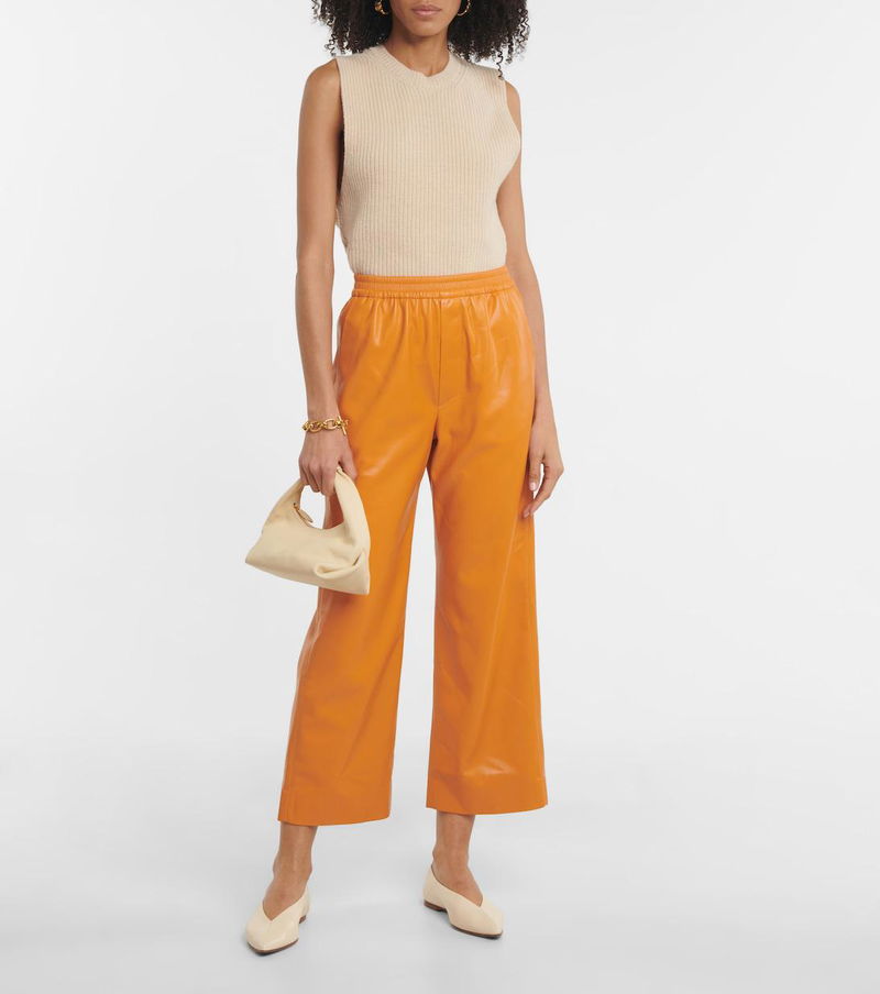 The Odessa pants are one of Nanushka's signature designs made from a supple fabric. This orange style is elasticated at the high-rise waist and flares out into wide legs.