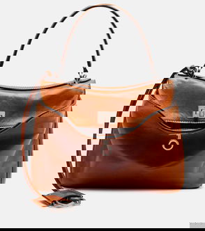 Nanushka's vegan leather also extends to its accessory line, as shown on the Trapeze bag. Presented in the Spring-Summer 2021 collection, it features a soft shade of beige and a supple shape which gathers around its two handles. Its mini format allows you to take it with you wherever you go.