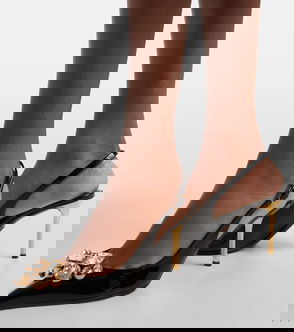 Step into stylish territory with these statement pumps from Nensi Dojaka. Italian-crafted from smooth patent leather, they’re shaped into a streamlined silhouette with pointed toes, sculptural curved vamps, and stiletto heels.