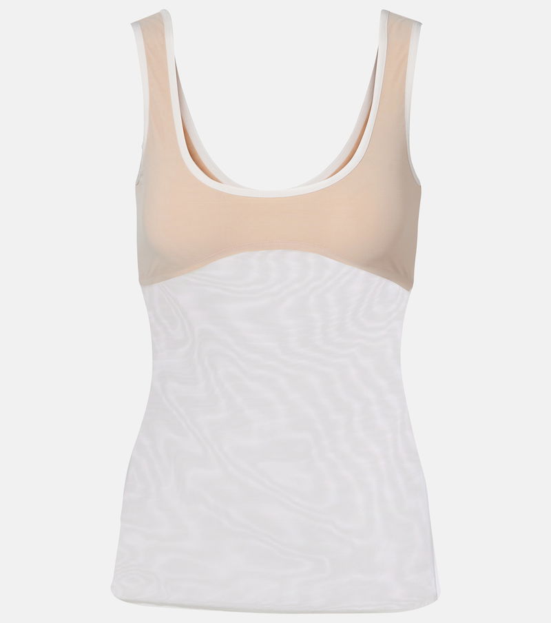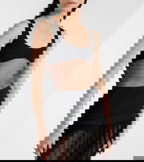 This tank top from Nensi Dojaka has a semi-sheer design with opacity at the bust. The fitted piece has a deep scoop neckline to accentuate its many rounded lines.