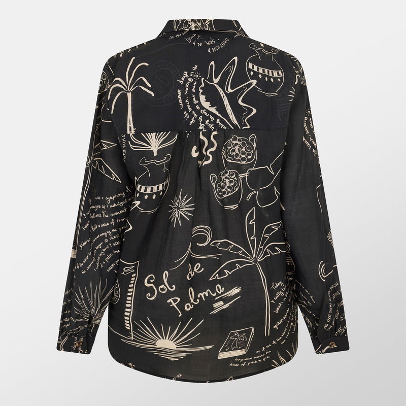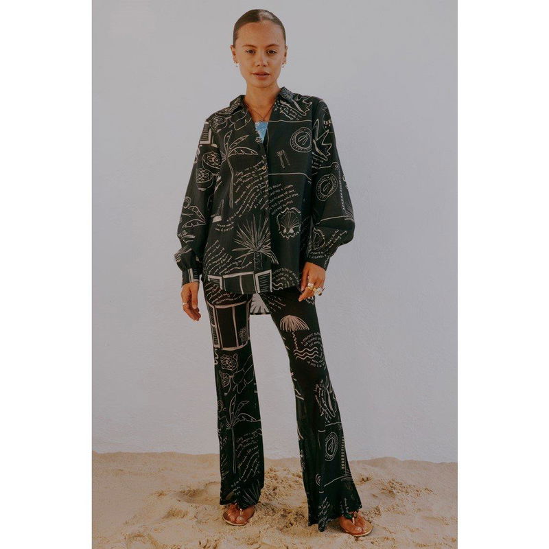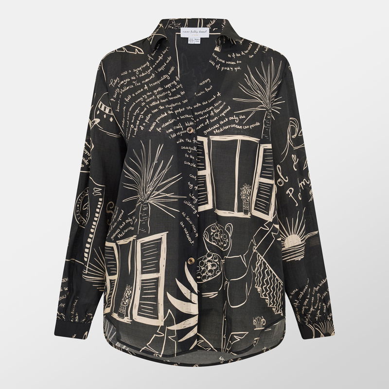 Add a statement piece to your wardrobe with the Mono Palma Miley Shirt by Never Fully Dressed, a brand renowned for its bold and playful designs. Adorned with vibrant hand-painted graphics creating a visual appeal. From daytime chic to summer evenings, this shirt is a staple.