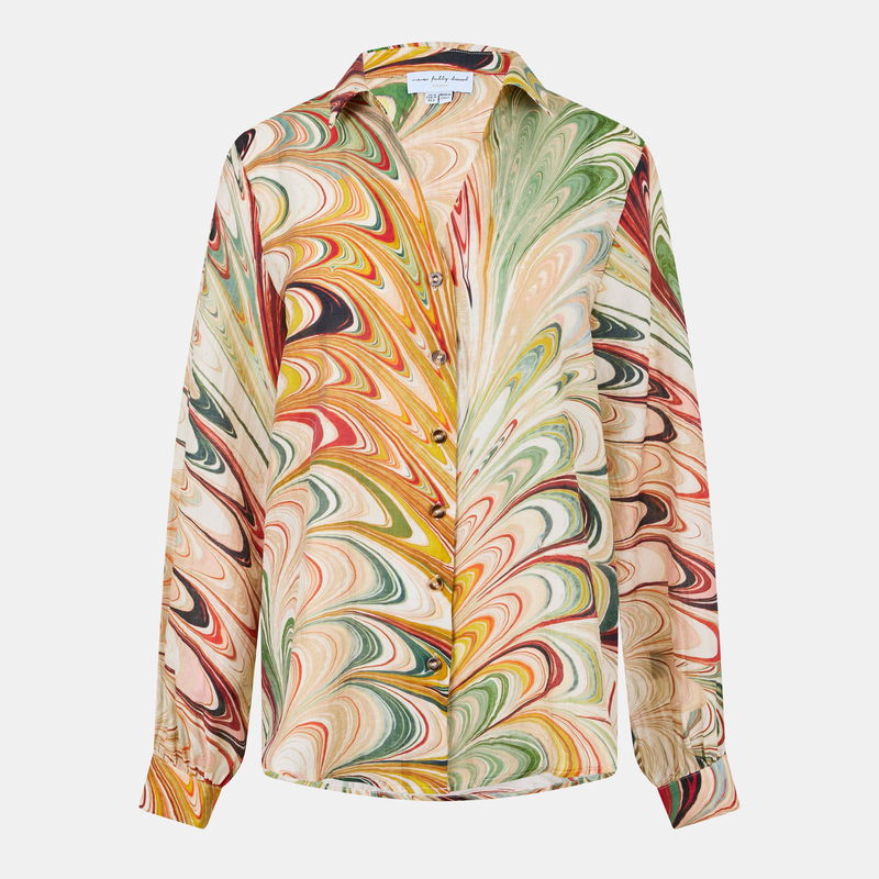 Never Fully Dressed's Miley Long-Sleeve Patterned Shirt brings a striking print to everyday dressing. The fluid design features an abstract pattern across a button-through shape that complements any outfit with its graceful style.