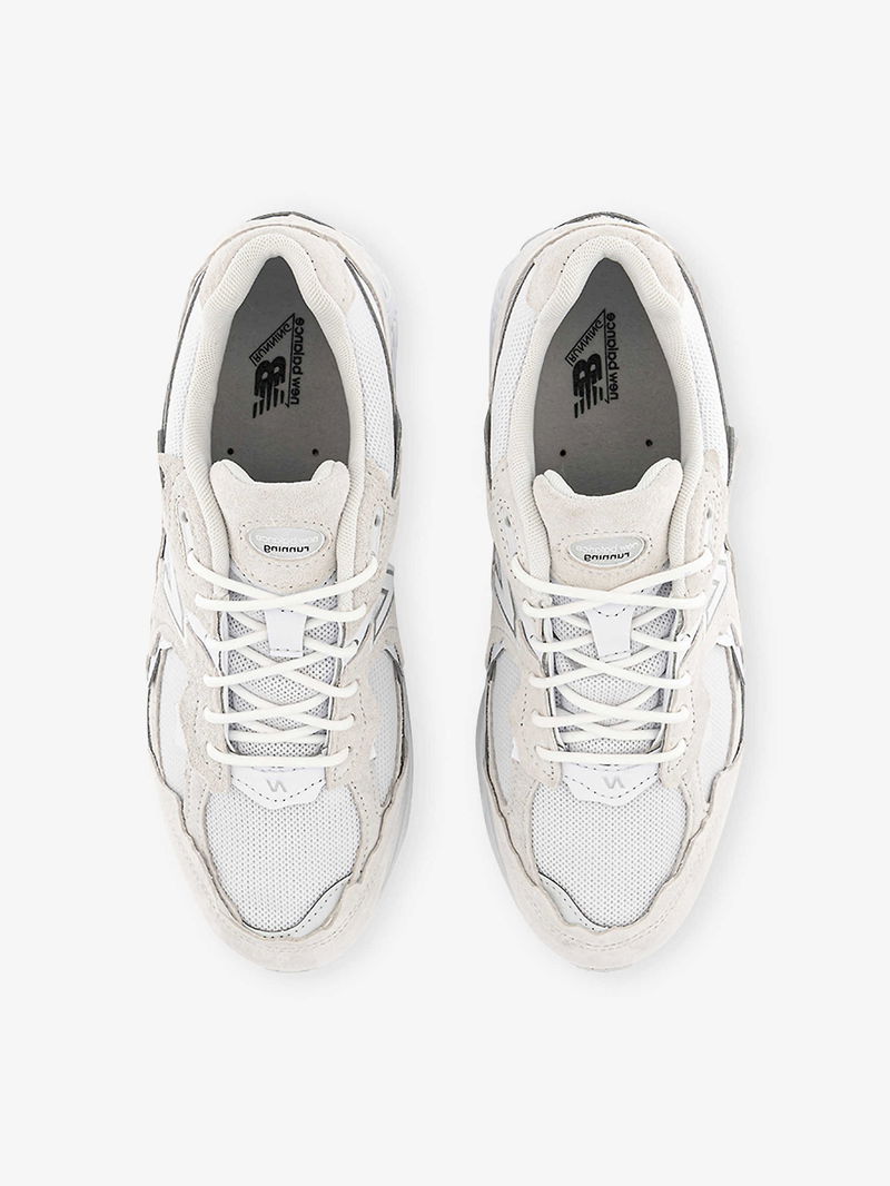 New Balance suede and mesh trainers. Round toe, panelled upper, logo detailing, ABZORB midsole and heel cushioning, Stability Web technology arch support.