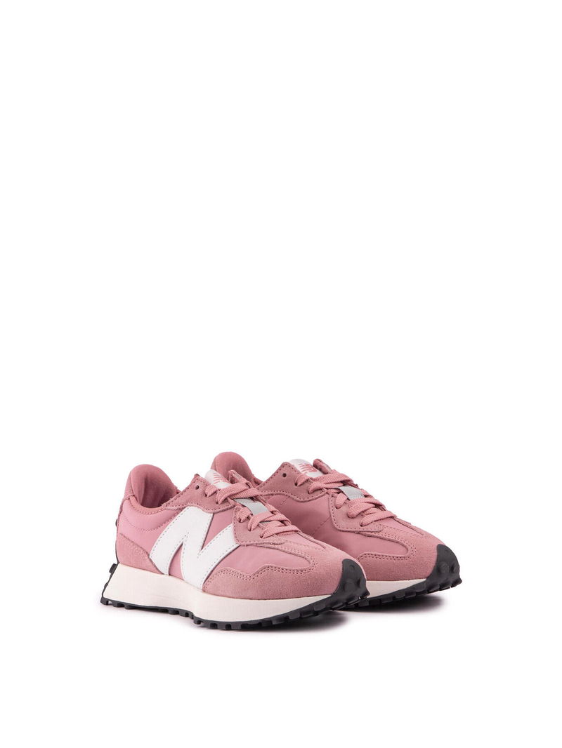 The pink New Balance 327 is a modern take on the iconic NB running shoe silhouette, with a padded collar, suede and nylon details, Eva midsole and a chunky outsole with rubber pods for extra support and grip. This 327 version features that famous N-logo in white on the side and is a vibrant, classic staple with a retro look and sharp modern edge.