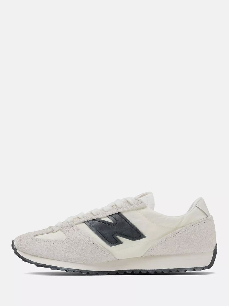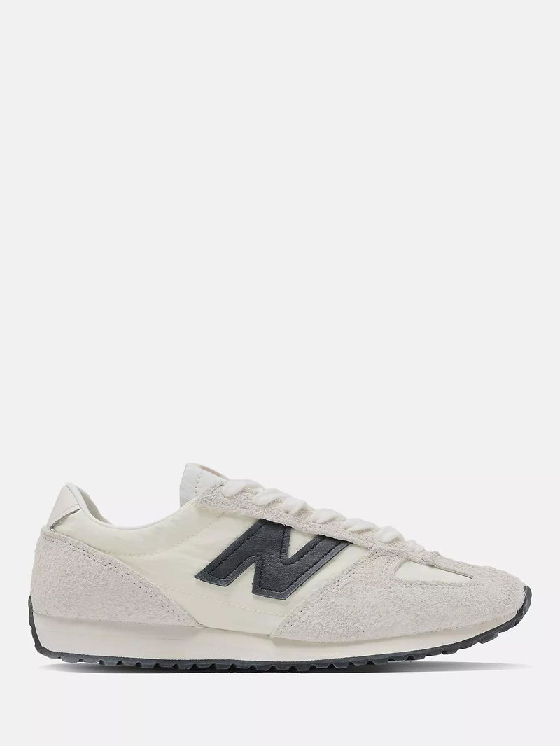 The 471 transforms '70s running heritage into a new, everyday go-to, with a reinterpretation of the era's visual signatures. The sleek low profile, wedge-shaped EVA midsole, and herringbone outsole provide a familiar starting point, allowing the elevated material choices to take the lead. Breathable mesh uppers and hairy suede overlays provide an effortlessly lived-in look, while the classic 'fang' design at the toebox is a uniquely New Balance visual flourish.