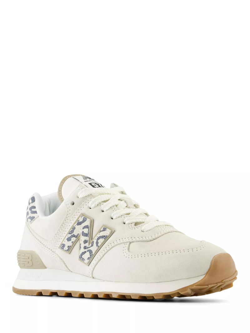 574 Leather Lace-Up Trainers, Off White/Multi