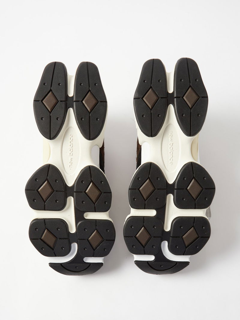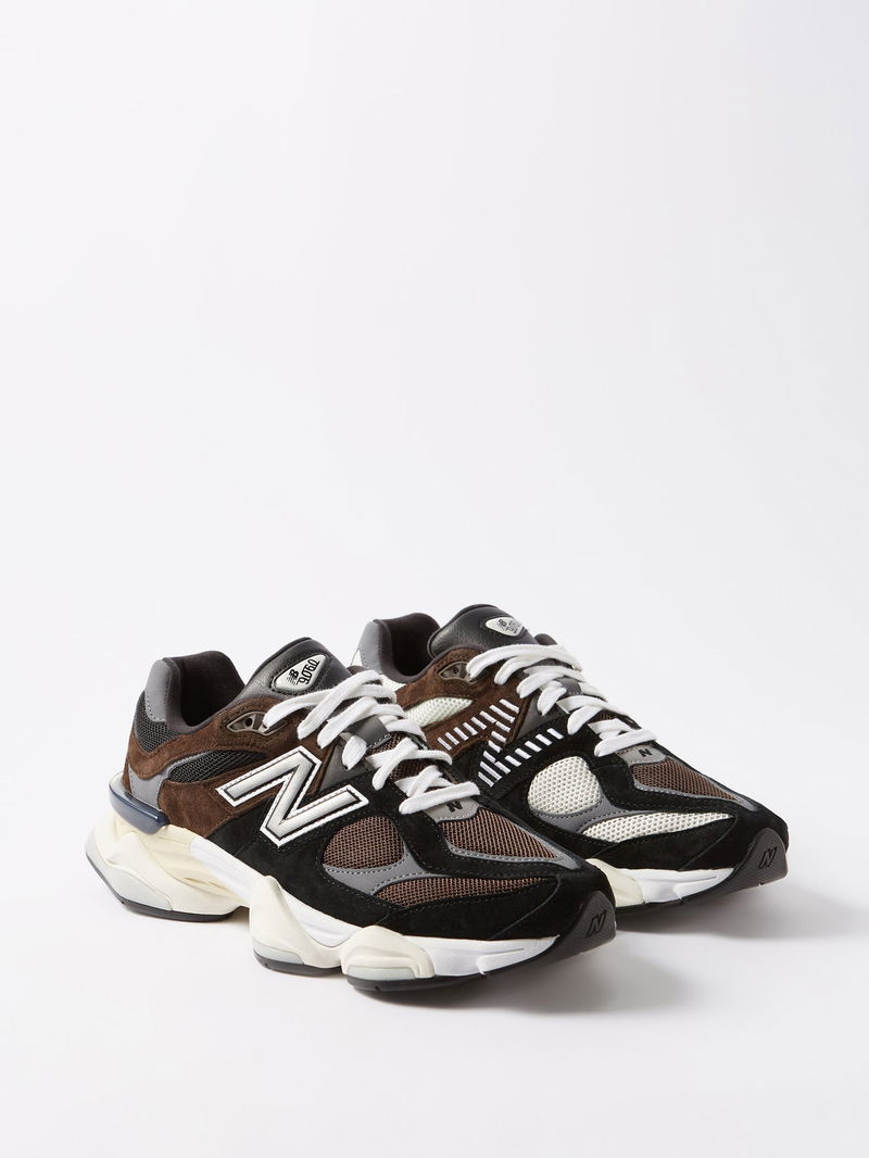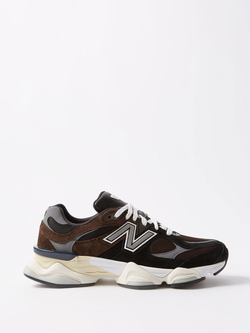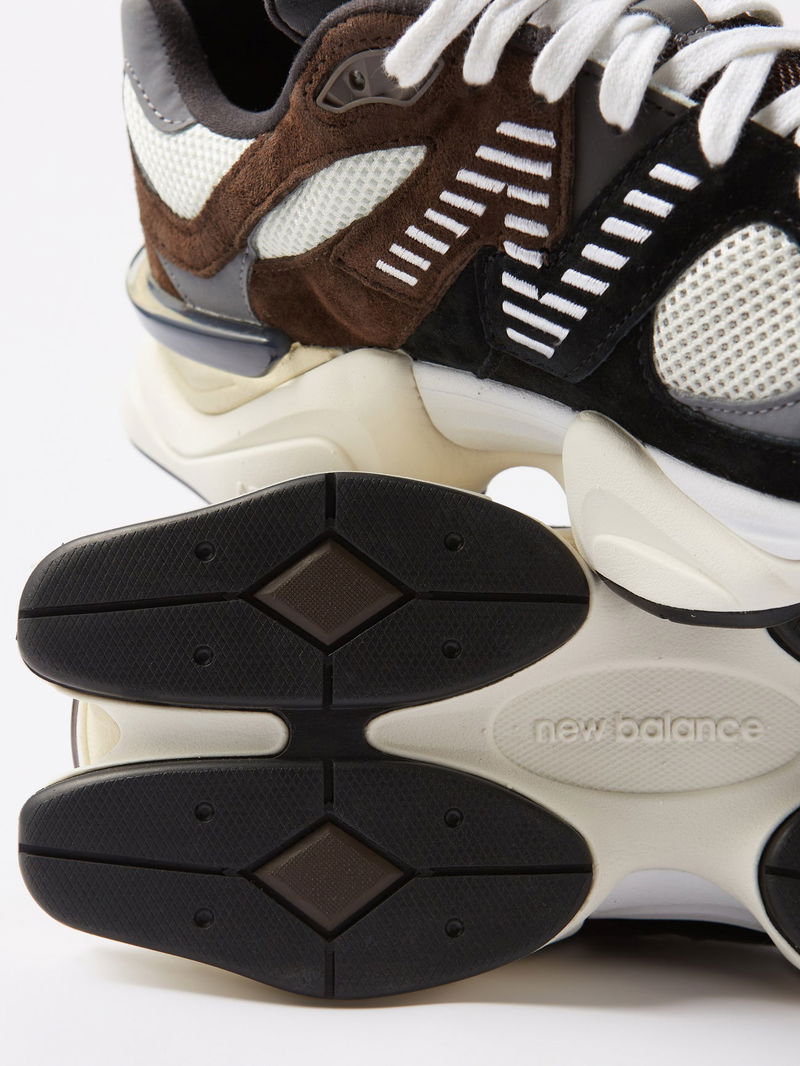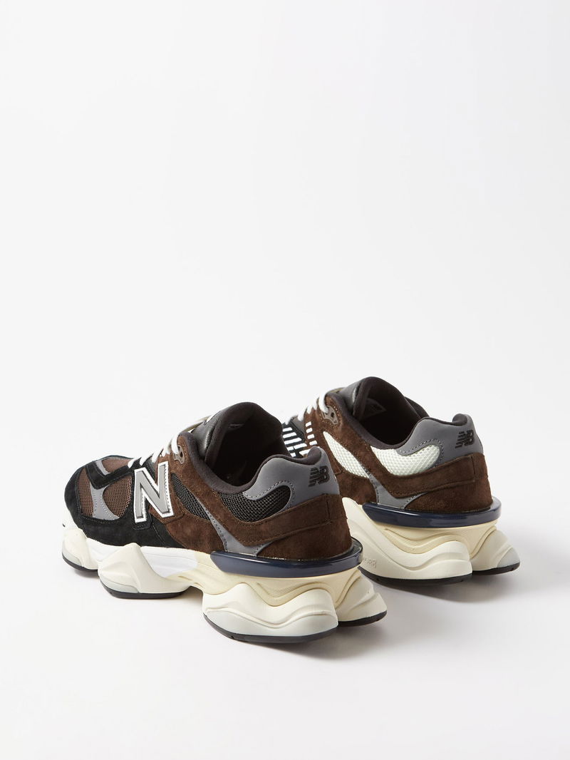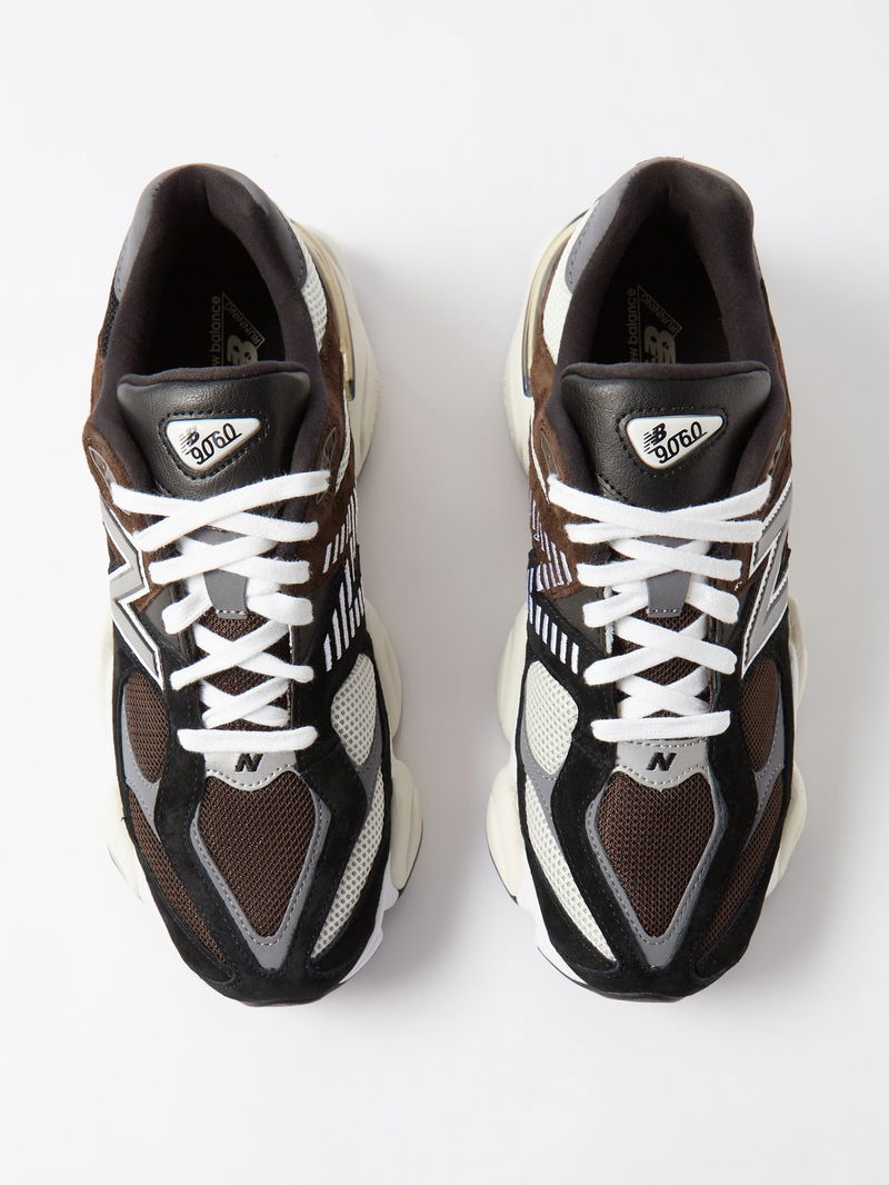 New Balance's black 9060 trainers are crafted from suede and mesh with innovative ABZORB cushioning and a diamond-patterned sole inspired by the label's classic 860 design.