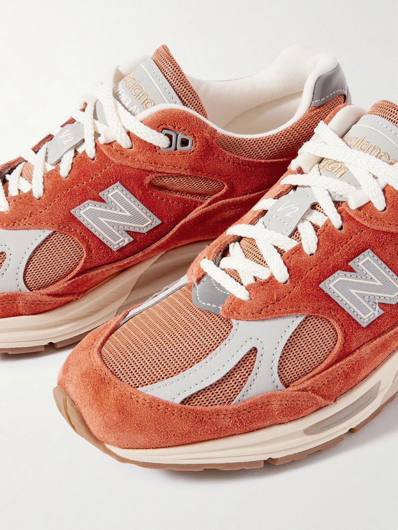 It's sneakers like New Balance's '991' design that we have to thank for the 'Dad shoe' trend - released in 1982, they're still loved for their sporty paneled uppers and cushioned soles. This pair has been made in the UK from smooth suede, leather and mesh. The style name is embroidered onto the tongues and heel tabs.