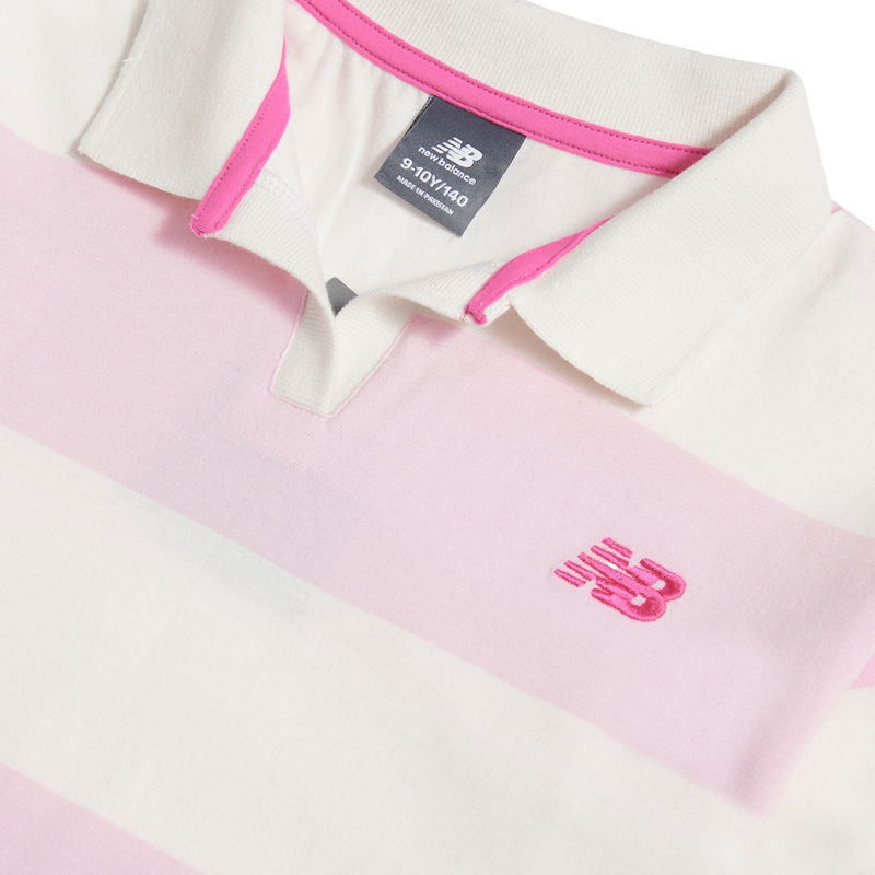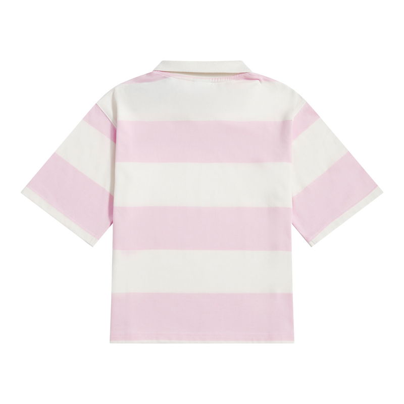 Girls Striped Rugby Polo In White Cotton