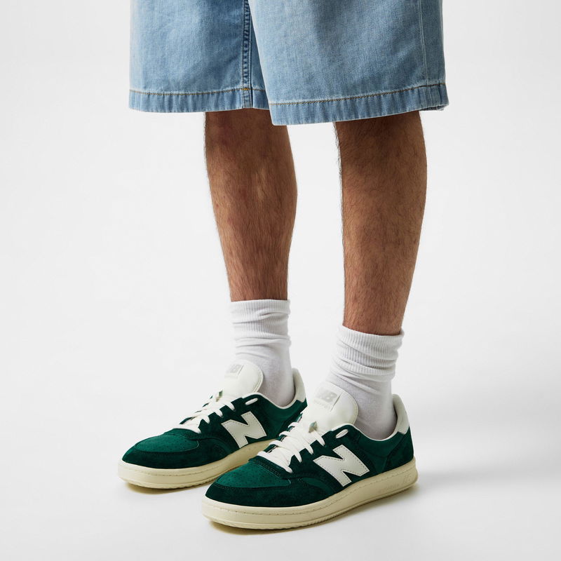 Crafted with sumptuous pigskin suede and nubuck, the upper boasts a sleek silhouette, while the perforated toebox enhances breathability for all-day comfort. The herringbone outsole pattern guarantees supreme traction on various surfaces, instilling each step with unwavering confidence. Ensuring comfort with every step, the front lace-up closure creates a bespoke fit. Complete with the 'New Balance' wordmark branding at the heel and the iconic 'N' logo on the sidewall, the label's renowned sporting excellence will be proudly presented with every wear. Versatile and refined, the T500 Trainers are the ideal choice for days in the city to nights out on the town alike.