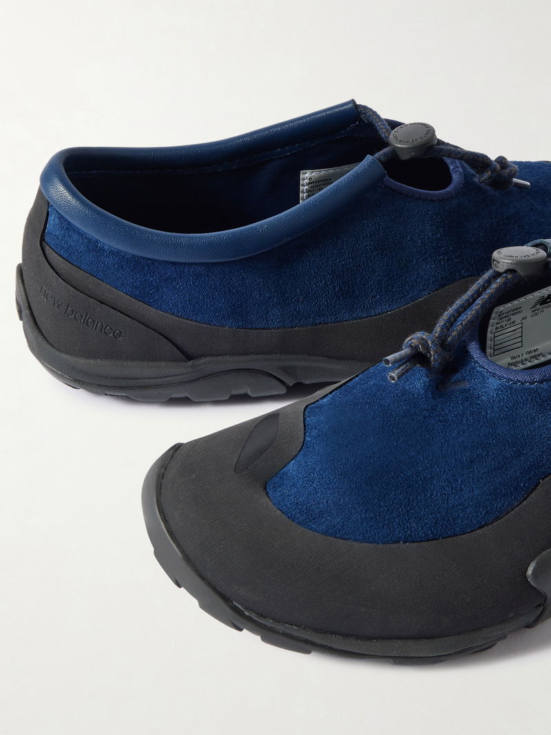 New Balance collaborates with Tokyo Design Studio to create these understated yet practical 'Minimus' sneakers. They are paneled with shell and suede and have toggles for a secure fit and ridged rubber soles for plenty of traction.