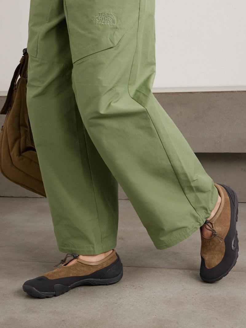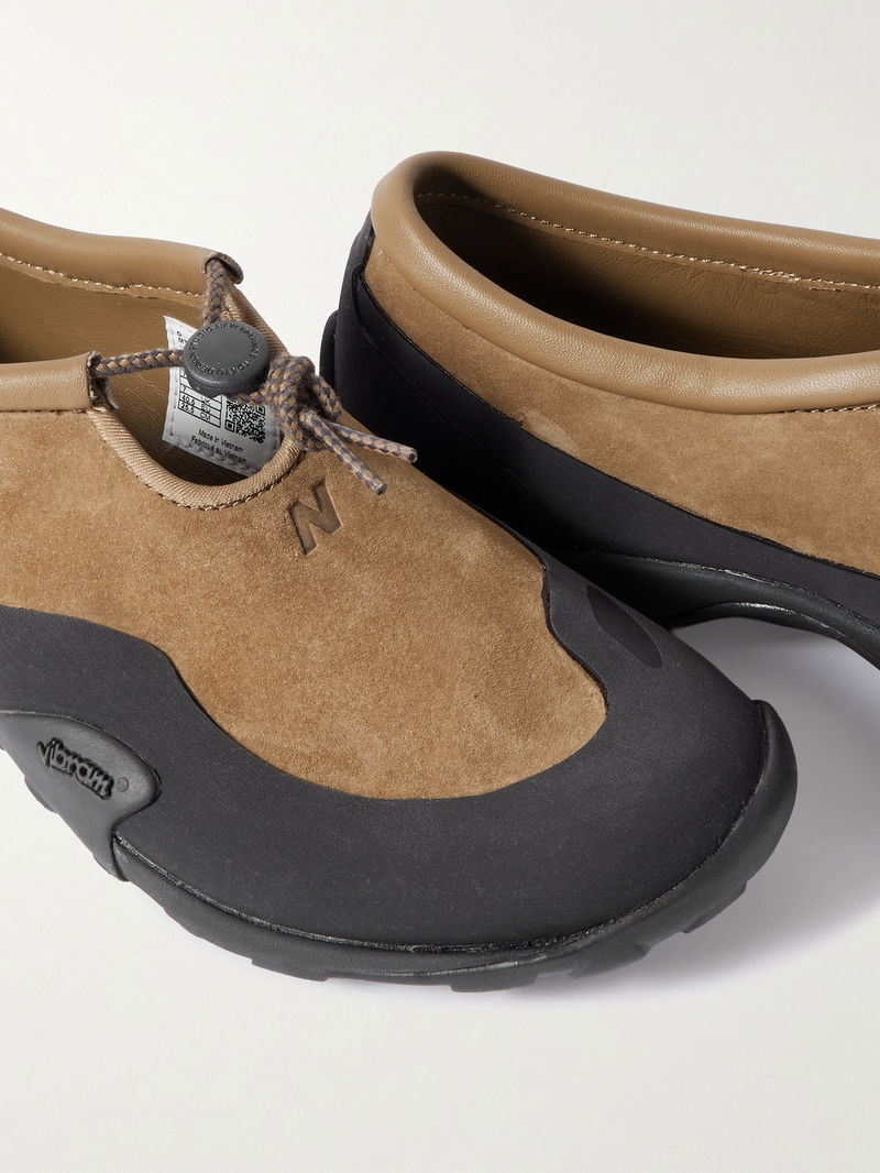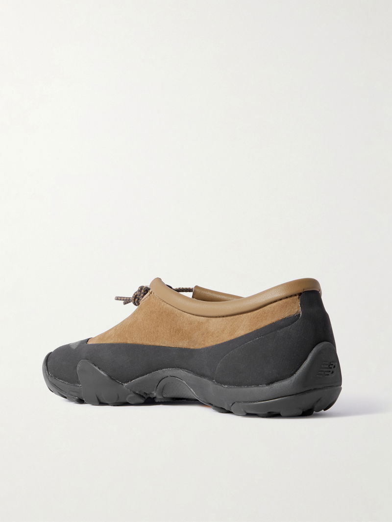 They are paneled with shell and suede, with toggles for a secure fit and ridged rubber soles for plenty of traction.