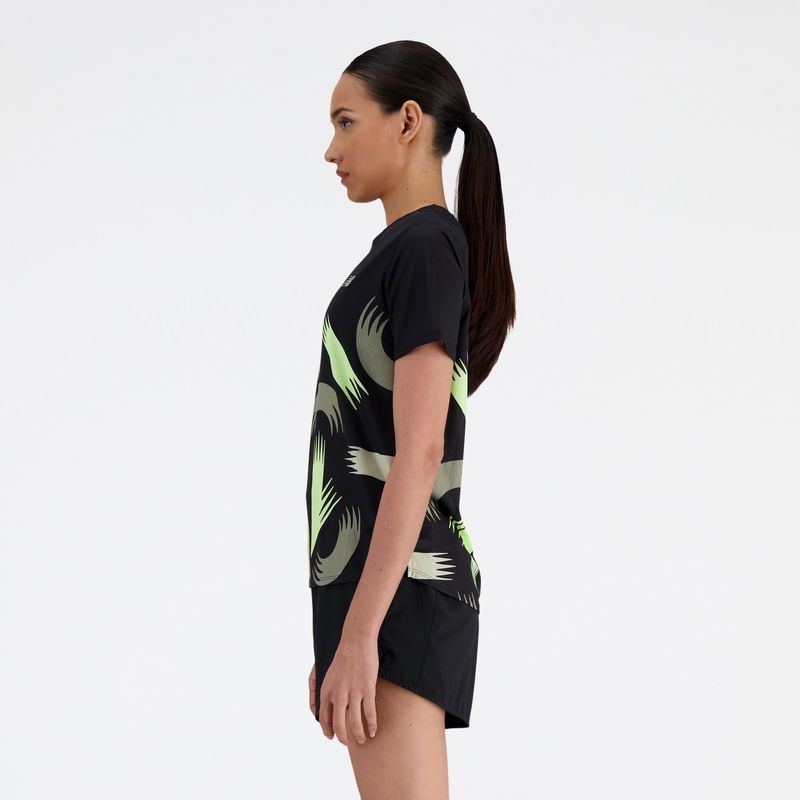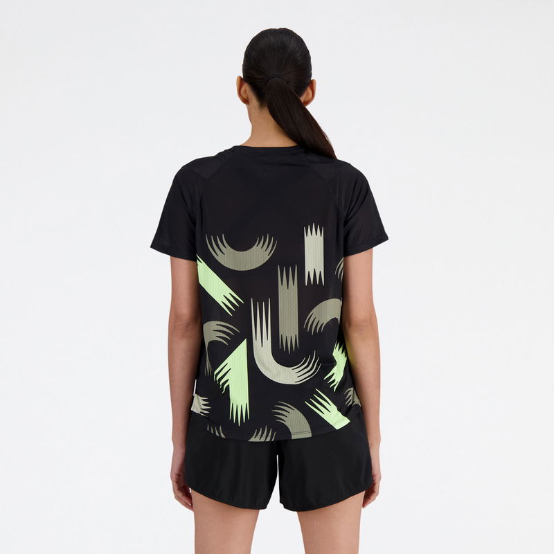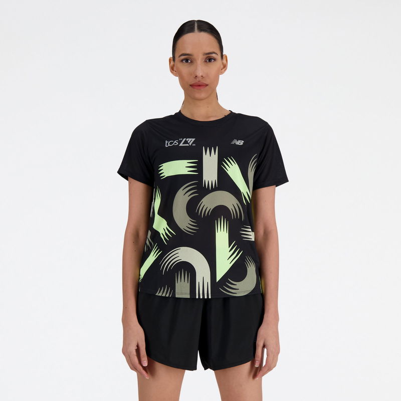 Women's London Edition Printed NB Athletics Short Sleeve In Black Poly Knit