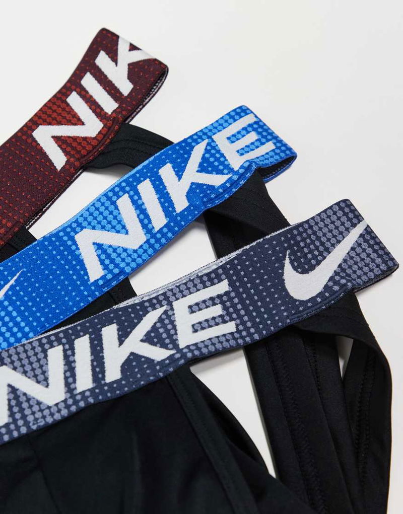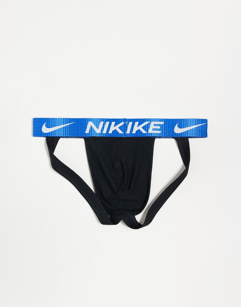 Dri-Fit Essential Microfibre 3 Pack Jock Straps In Black With Grey / Brown / Blue Waistbands