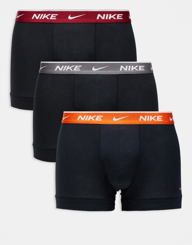 Essential Cotton 3 Pack Trunks In Black With Orange/red/grey