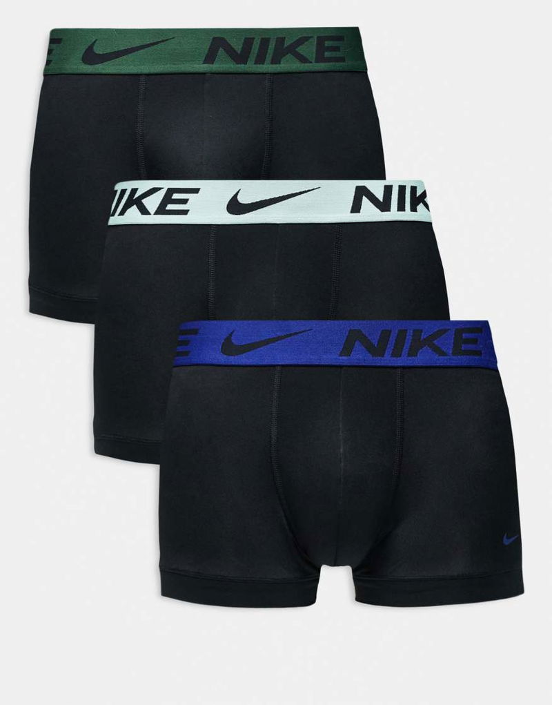 Essential Microfibre 3 Pack Trunk In Black With Coloured Waistband In Green / Blue / Mint