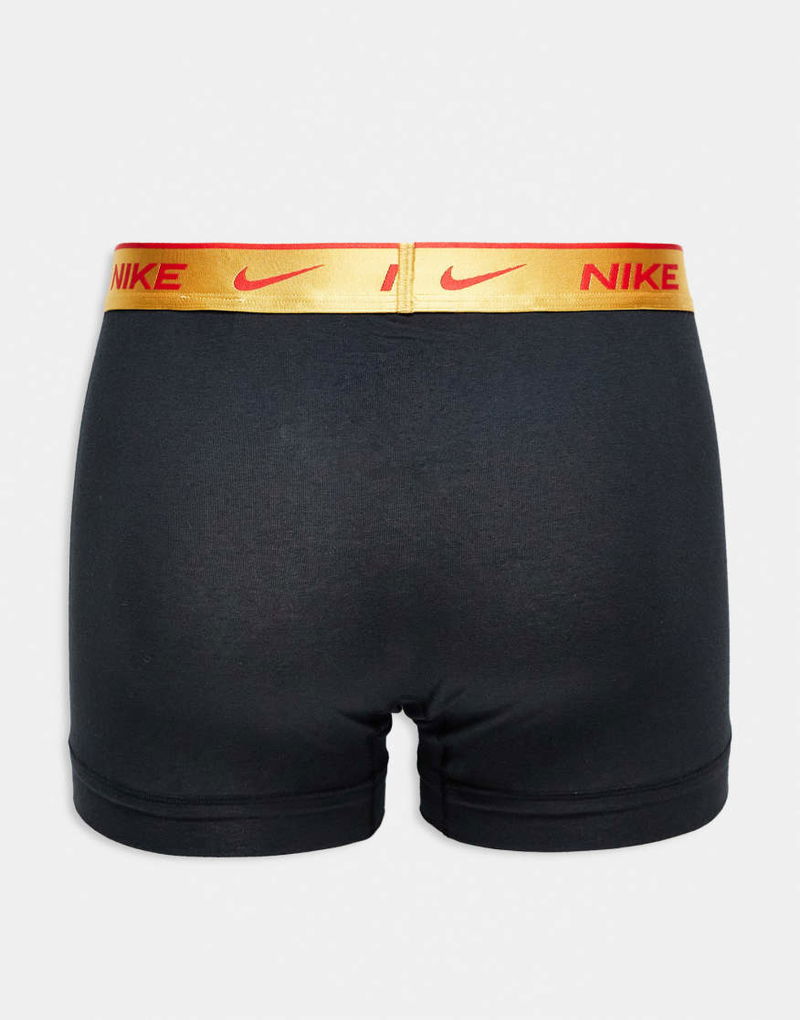 Everyday Cotton Stretch 3 Pack Trunk In Black With Coloured Waistband In Black / Gold / Red