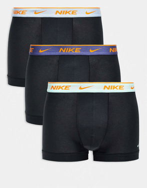 Everyday Cotton Stretch 3 Pack Trunk In Black With Coloured Waistband In Grey / Pink / Blue